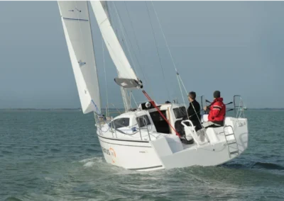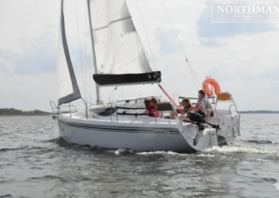 Komplet żagli: grot + fok, roler żagla przedniego, podwójny system refowania żagla głównego